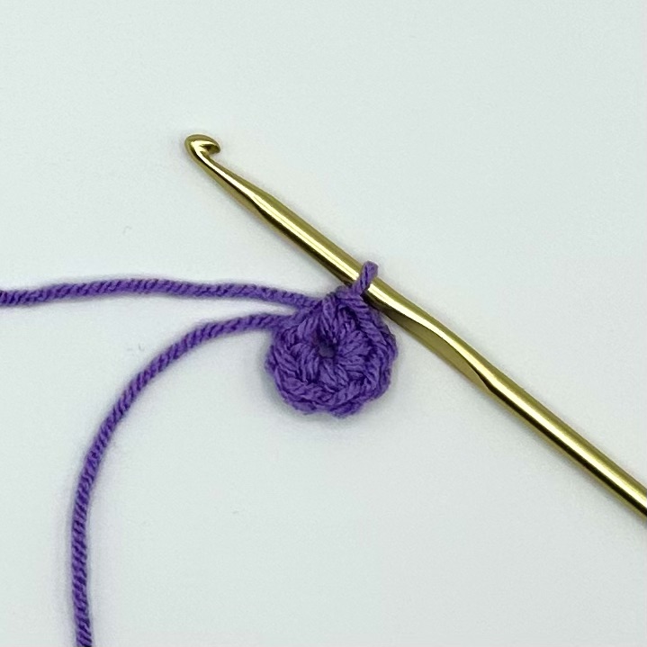 7. Place 5 more single crochets into the center of the ring for a total of six single crochets.