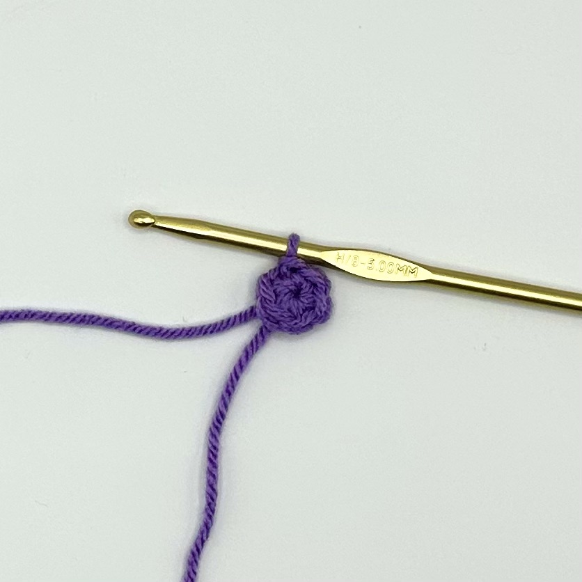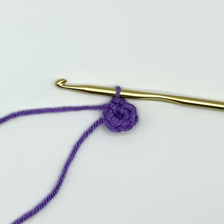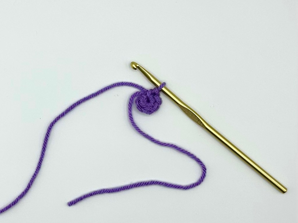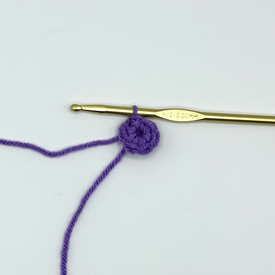 13. Place 5 more single crochet into the ring for a total of six single crochet.