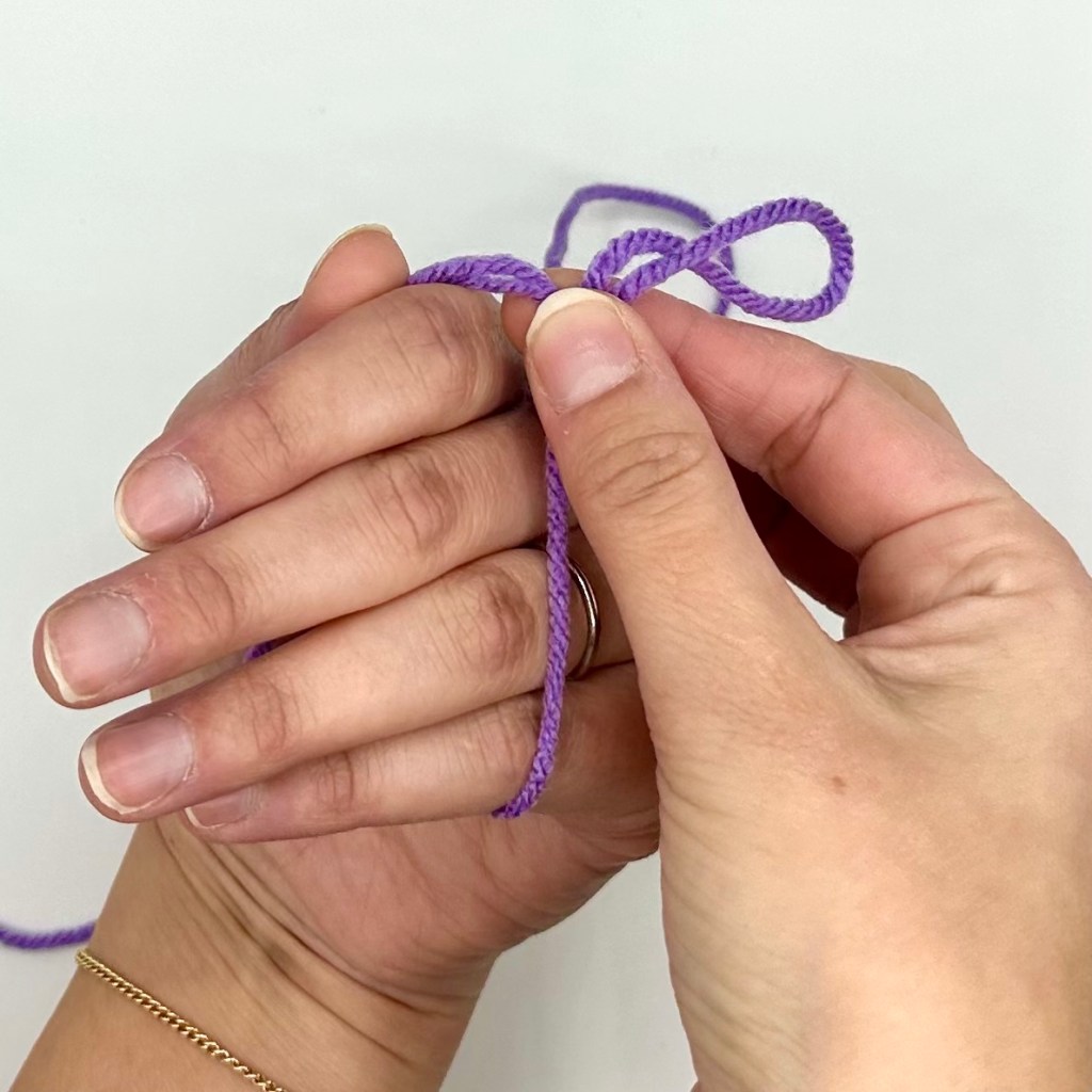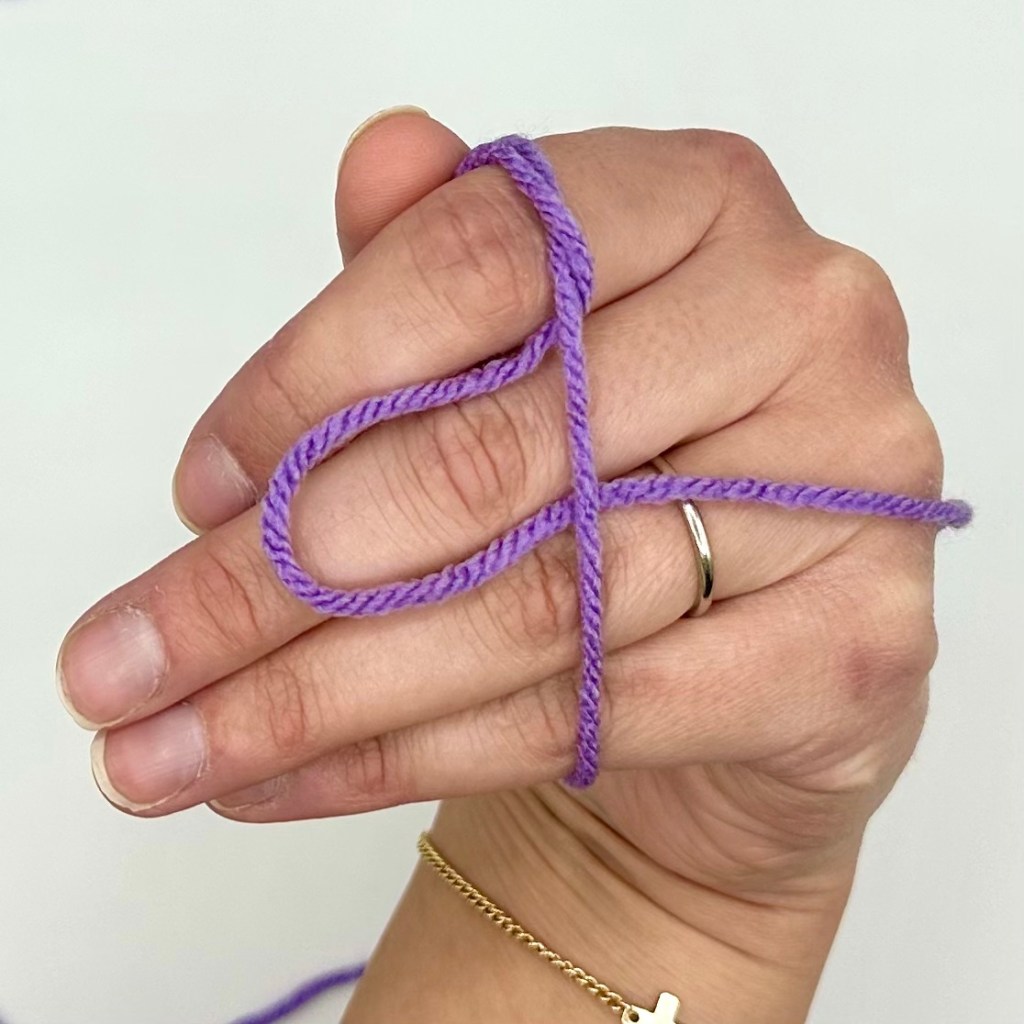3. Bring the working yarn forward and up across the palm-side of your hand.