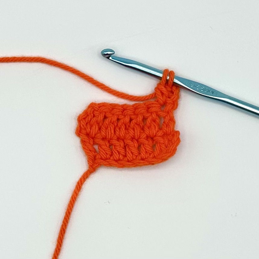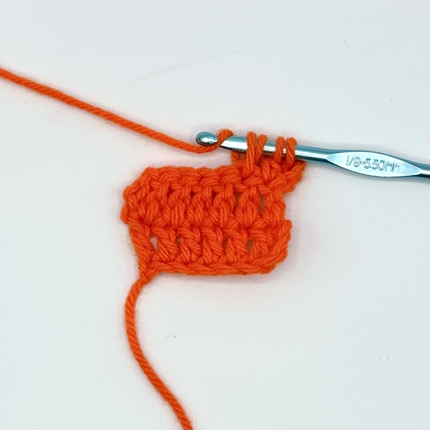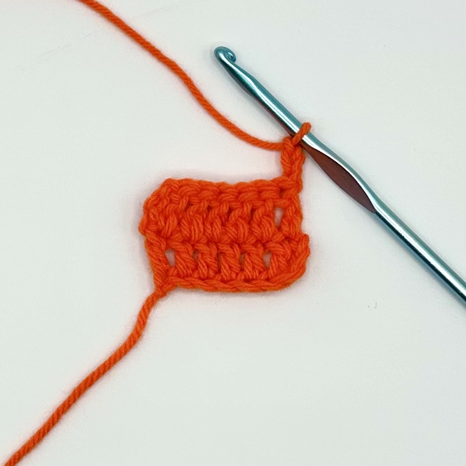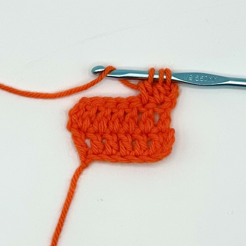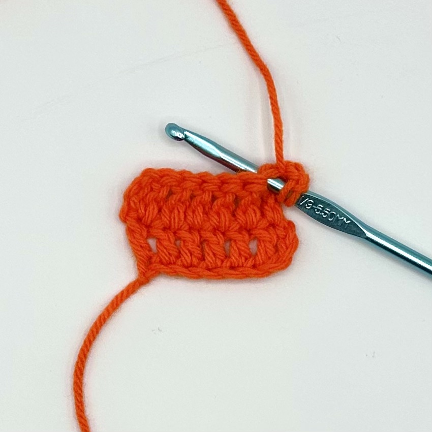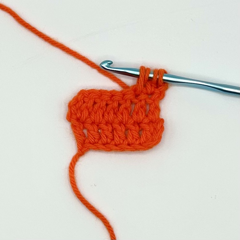 This tutorial is being demonstrated after the completion of two rows of six double crochet and a turning chain of three.