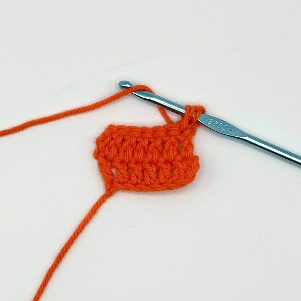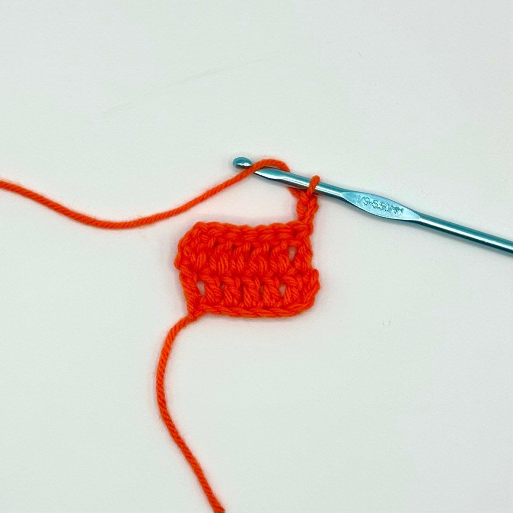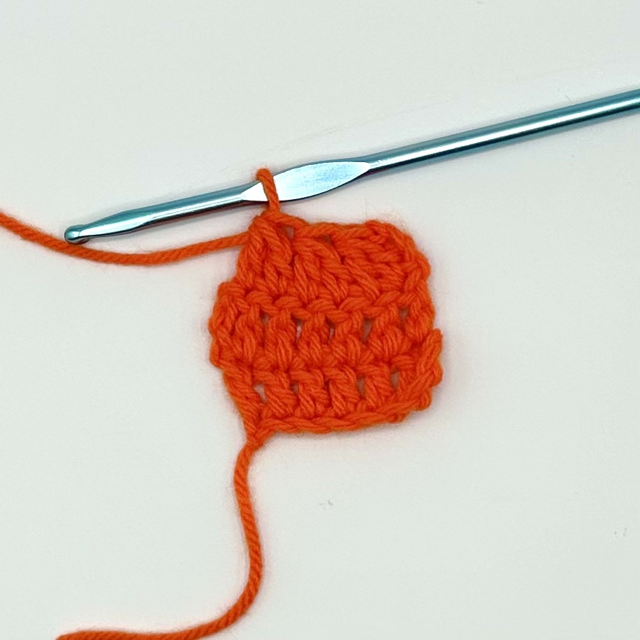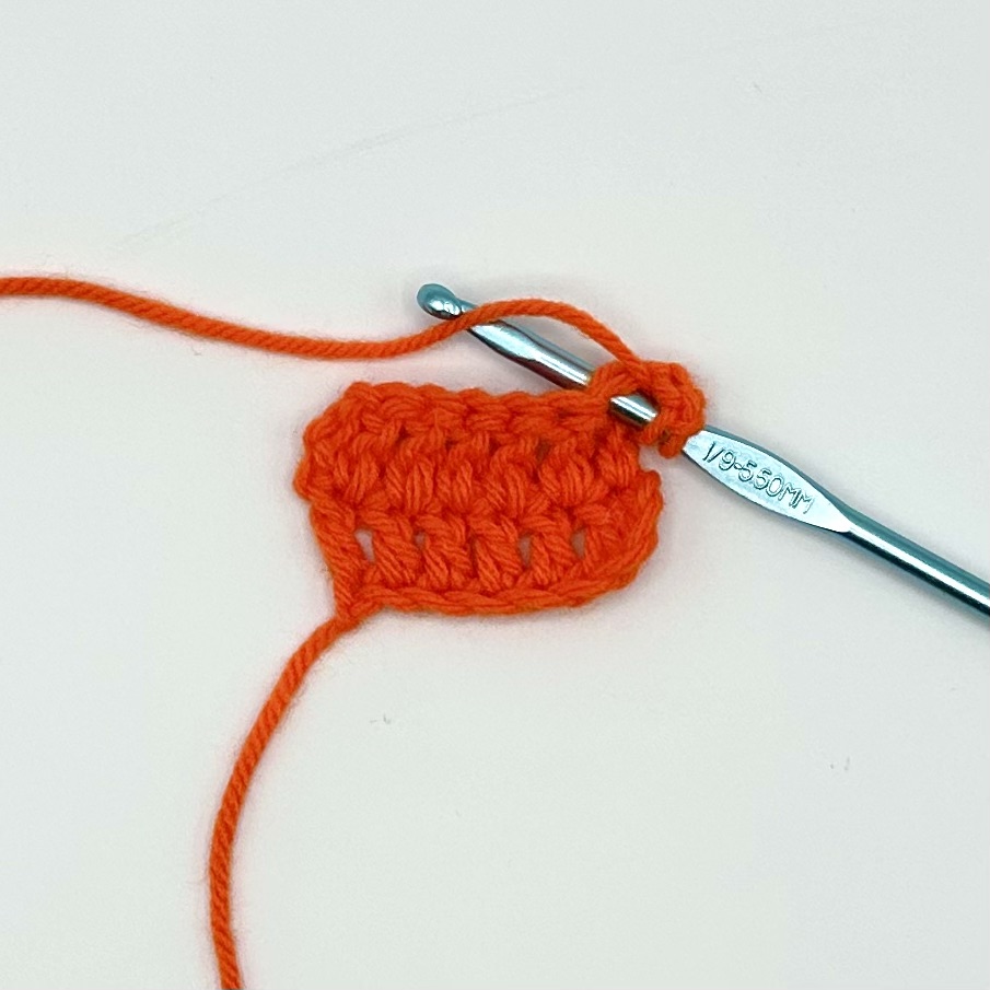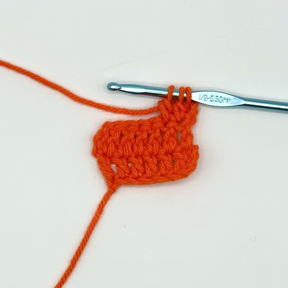 This tutorial is being demonstrated after the completion of two rows of six double crochet and a turning chain of three.