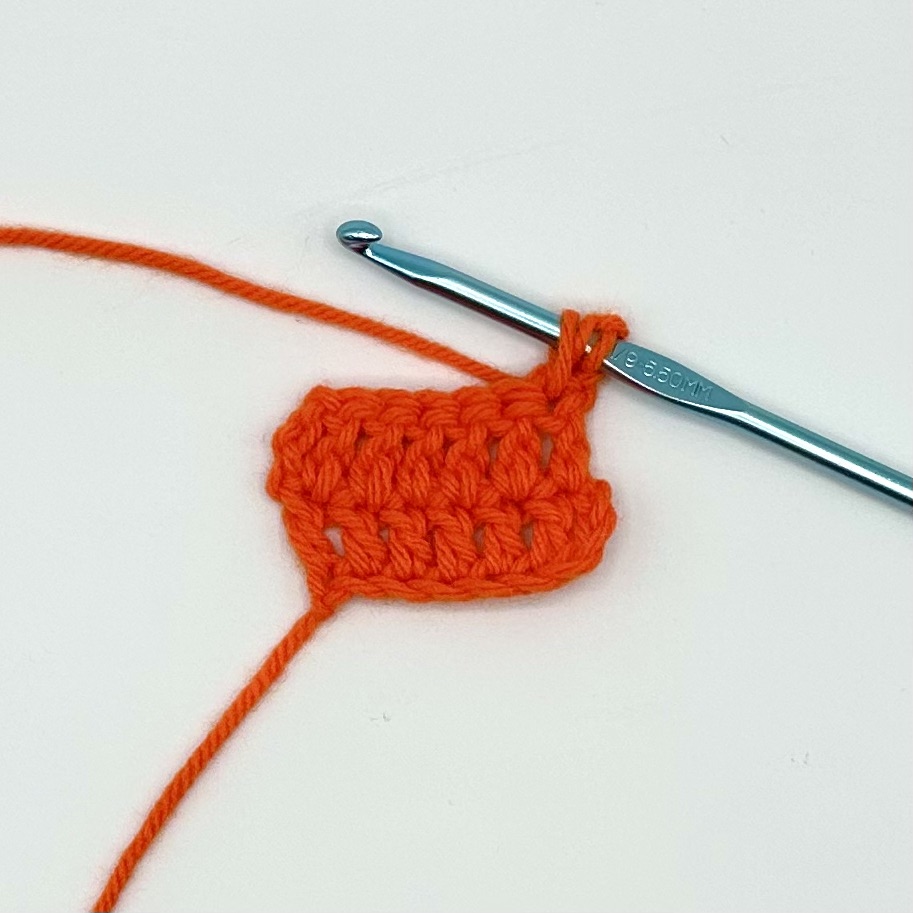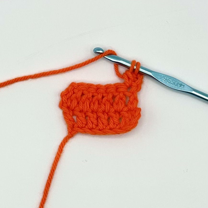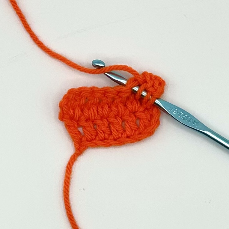14. Pull the working yarn through all three loops on the hook. One loop will remain on the hook.