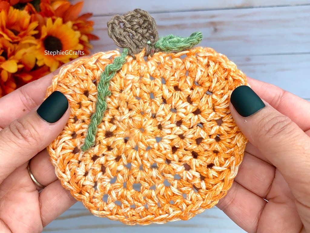 Autumn is here and pumpkin season is upon us! This crochet pattern for the Autumn Pumpkin Coaster is a fun, quick make that can be made using left-over scrap yarn. Below is the written pattern and video tutorial to crochet your own.
