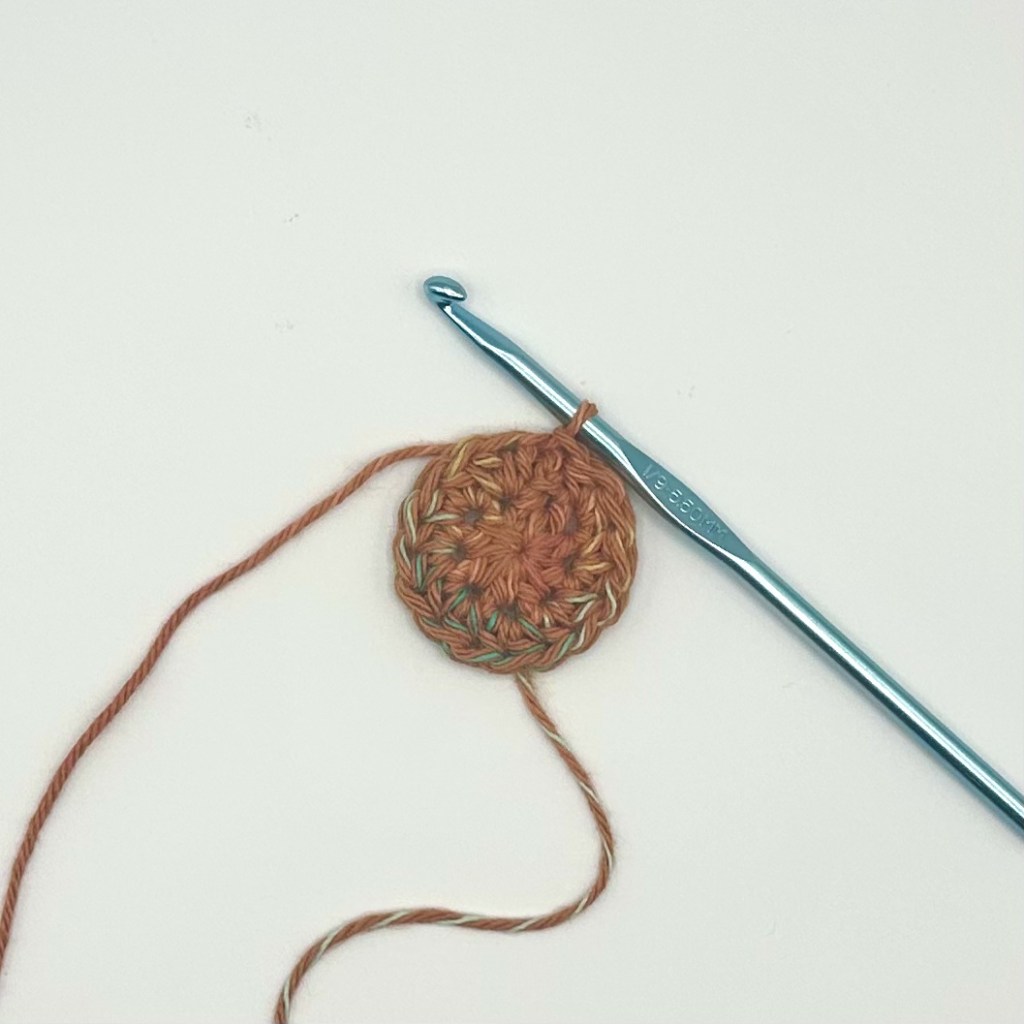 Round Three: CH2. (HDCINC. HDC.)*. SS into the first hdc of the round. (24sts)