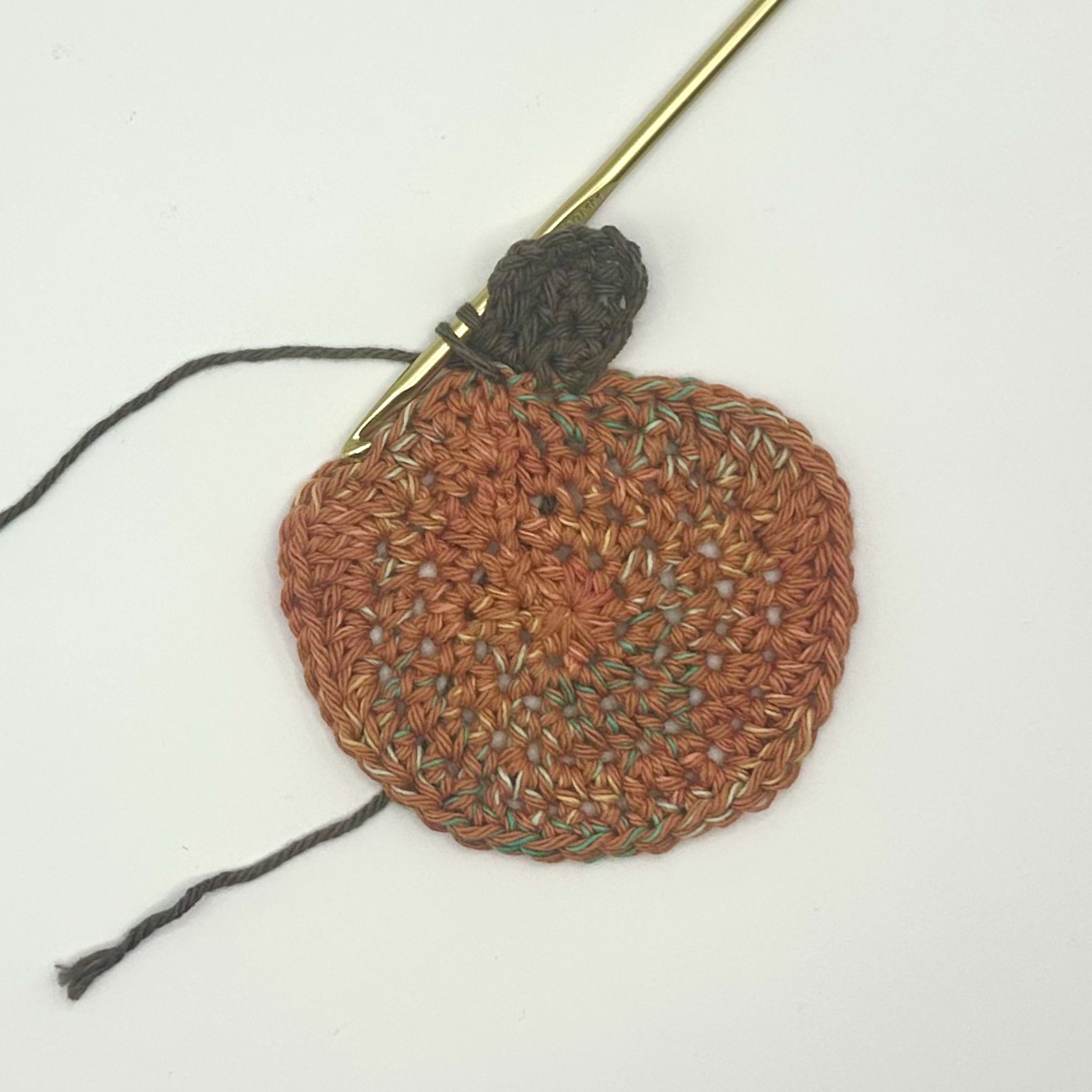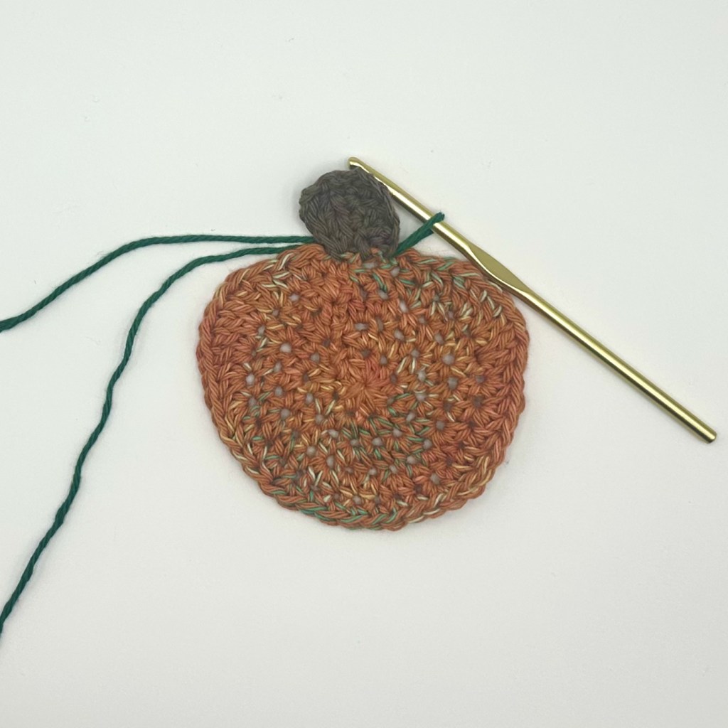 Attach the yarn to the top, left side of the pumpkin stem. CH10.
